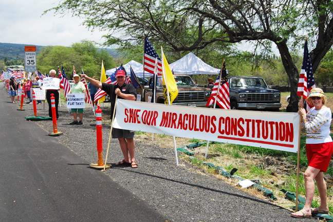 Sunrise Flag Waving on the "Great Wall of Kona" in Memory of 9/11