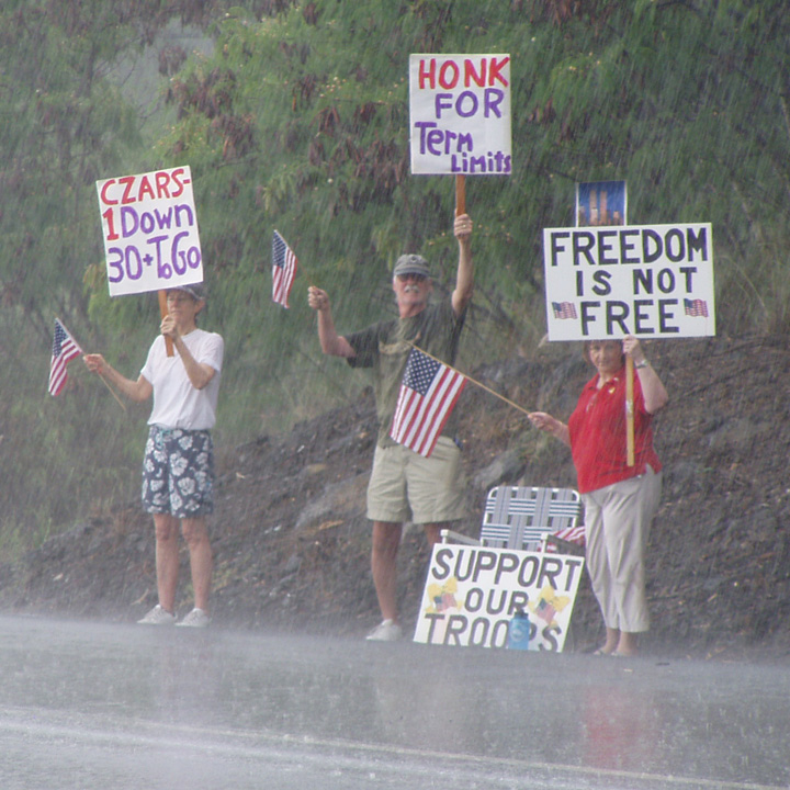 Sunrise Flag Waving on the "Great Wall of Kona" in Memory of 9/11