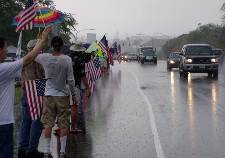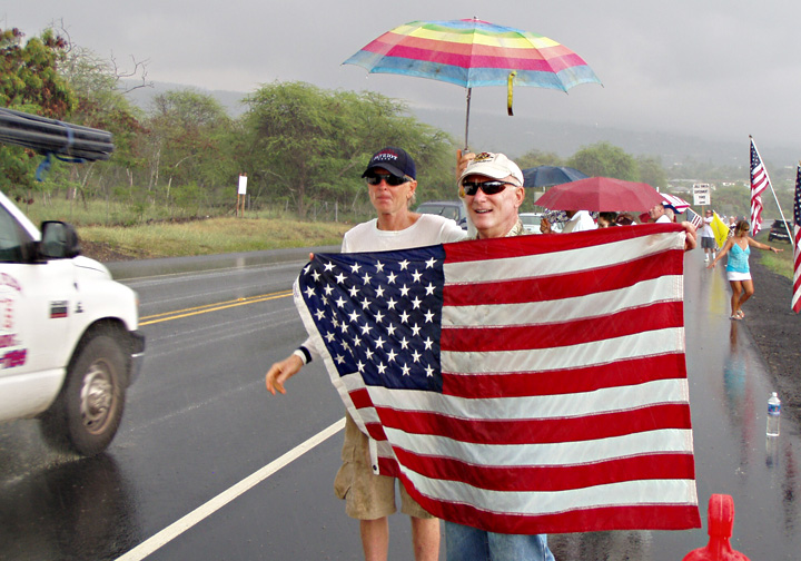 Sunrise Flag Waving on the "Great Wall of Kona" in Memory of 9/11